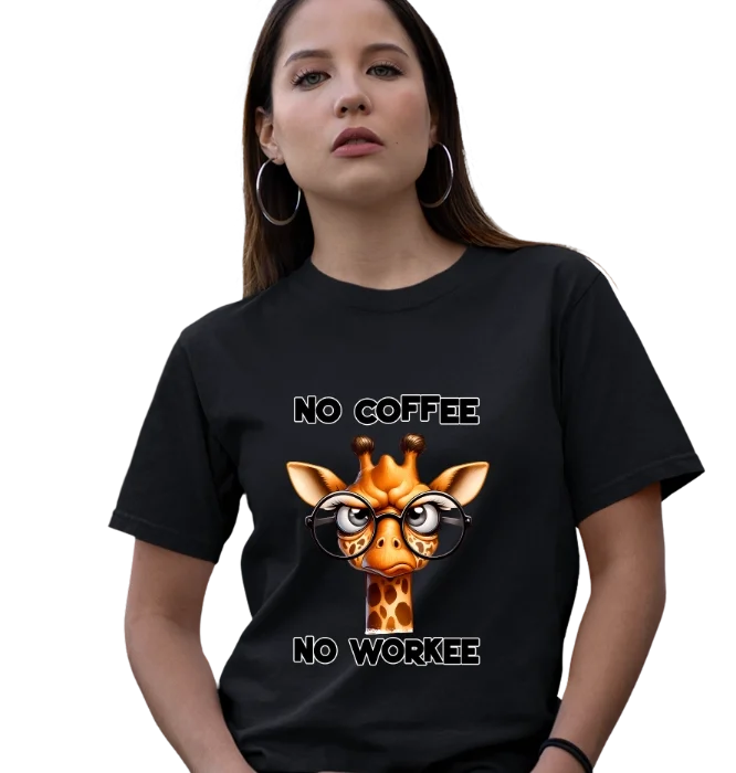 No Coffee No Workee T-Shirt – Funny Giraffe Coffee Graphic Tee