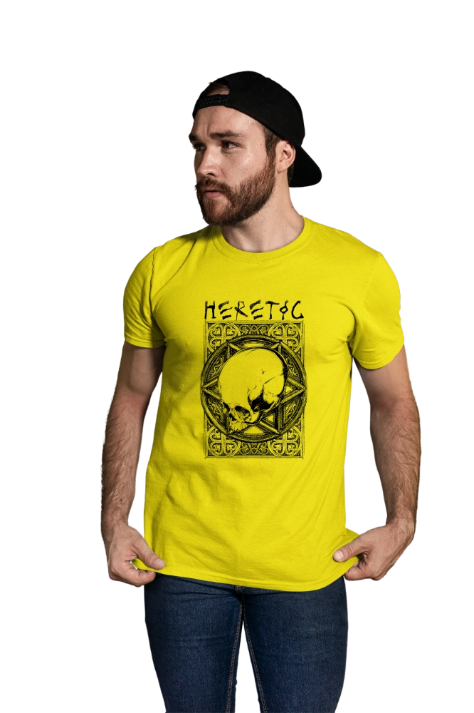 Το συγκεκριμένο heretic skull t-shirt απευθύνεται σε όσους αγαπούν gothic αισθητική και έντονα graphic designs. Συγκεκριμένα, το skull illustration δημιουργεί ισχυρή αντίθεση πάνω στο ύφασμα. Επιπλέον, το minimal black and white στυλ ενισχύει την σκοτεινή ατμόσφαιρα του σχεδίου. Μπορεί να φορεθεί με jeans, cargo ή streetwear outfits. Παράλληλα, λειτουργεί ιδανικά για καθημερινές αλλά και βραδινές εμφανίσεις.