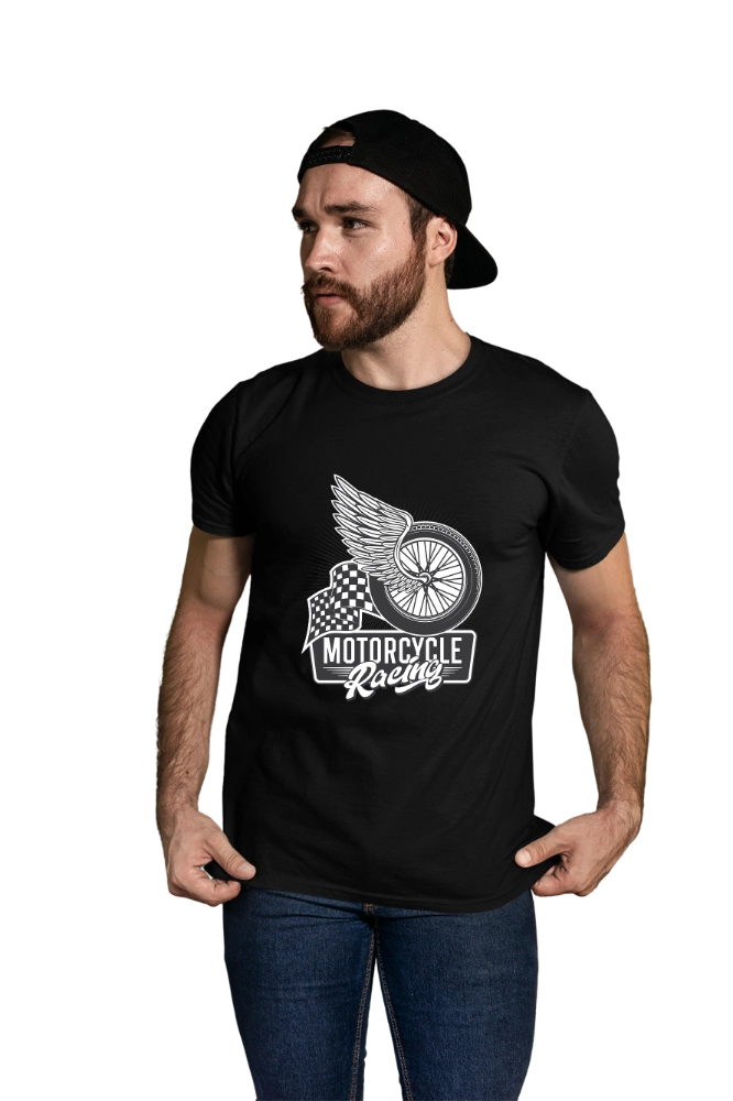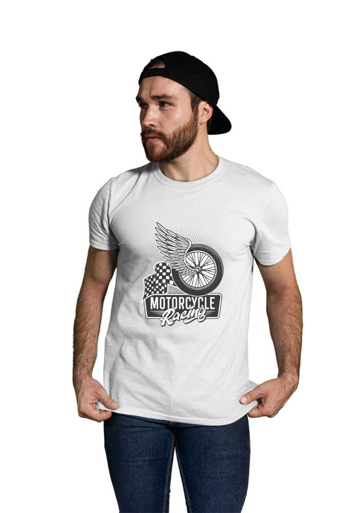 Motorcycle Racing T-Shirt – Vintage Winged Wheel Biker Graphic Tee